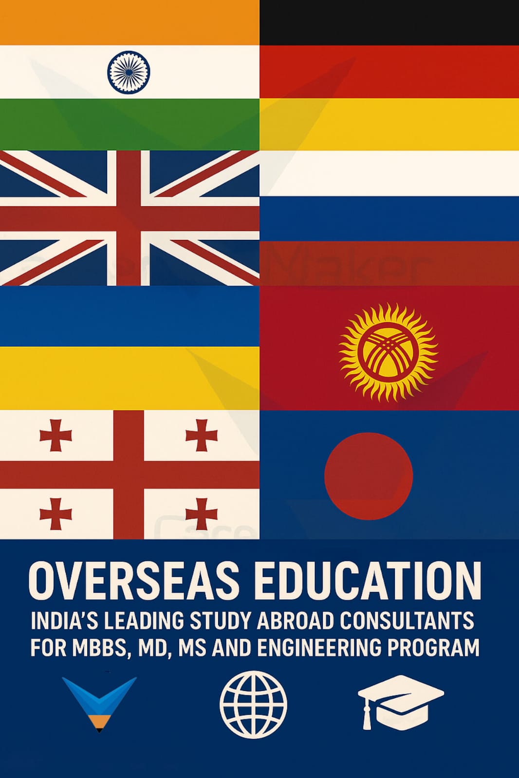 When it comes to Overseas Education, Career Maker is also among India’s leading study abroad consultants. We provide admission assistance for MBBS, MD/MS, and Engineering programs in globally recognized countries like:
